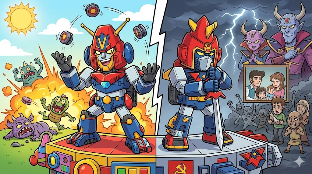 逆にボルテスVから入った人が後からコンバトラーVを見ると、「こっちはよりスーパーロボット的で、元祖っぽさが強いな」と感じるはずです。ボルテスVの重さに慣れたあとでコンバトラーVを見ると、「よりシンプルにまとまっていて、アクション重視でサクッと見やすい」という印象になることも多いですね。